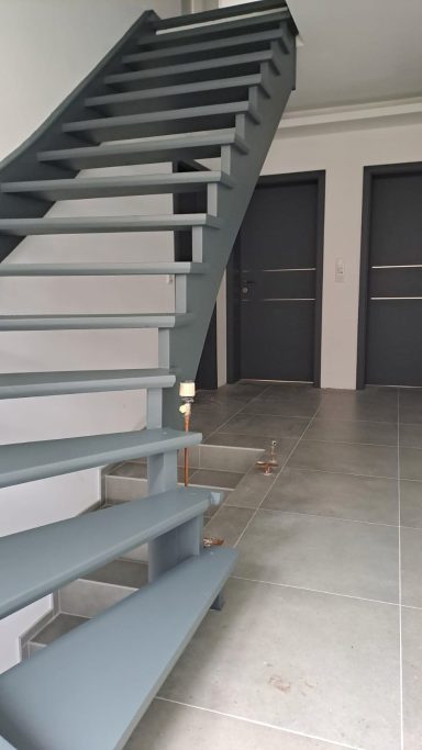 Das vorhandene Echtholzparkett wurde abgeschliffen und geölt. In den anderen Räumen wurde der Boden nach den Wünschen des Bauherrn erneuert. Zum Ende wurden alle Innentüren erneuert und die Übergänge zu den vorhandenen Böden angepasst.